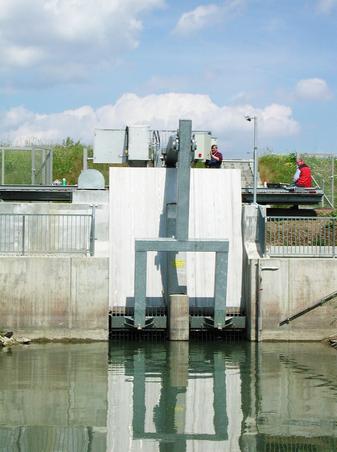 Machines of the type RRM are stationary trash rack cleaners with rotating rake heads pulled by two endless chains. This cleaner type is stabilized by a solid steel construction, the driving and deflector wheels above the water level are re-greasable; two more wheels immersed below the water are maintenance-free. The cleaning rake is also equipped with a highly wear resistant rubber scraper profile; the chains can be tensioned by special devices that are easily accessible.